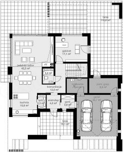 - dnevni boravak + trpezarija 42,5 m²