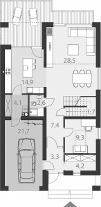 - dnevni boravak + trpezarija 28,5 m²