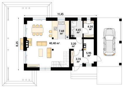 3. dnevni boravak + trpezarija 40,40 m²
